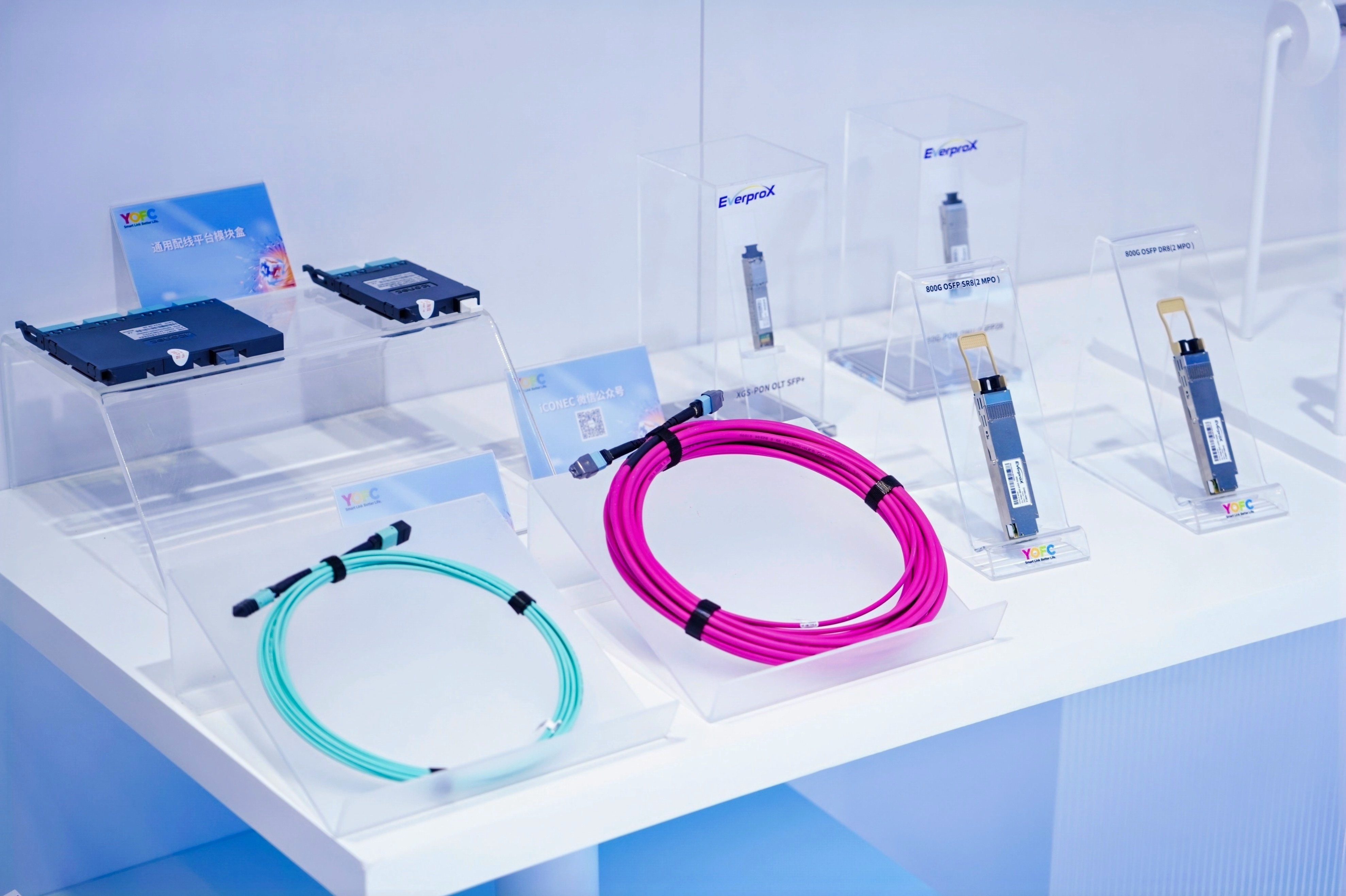 With the rapid development of AI large models such as Chat-GPT and Deepseek, the demand for information traffic and bandwidth at the terminal has seen explosive growth. EverProX has been deeply engaged in the field of data transmission. Based on its independently developed COB packaging technology, copper cable process platform and fully automatic multi-channel testing system, it provides customers with a wide range of stable and reliable optical modules, AOCs and high-speed copper cables in various rates, packaging forms and transmission distances on a large scale. EverProX was the first in the industry to release the 1.6T AEC product, achieving the synchronous development of optical and copper technologies in active cable products, and continuously supplies high-speed, low-power, small-sized, low-cost and highly reliable quality products and supporting services to the industrial chain.