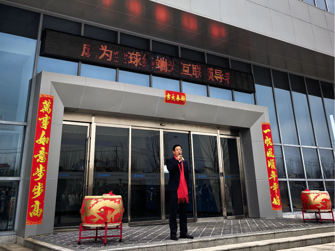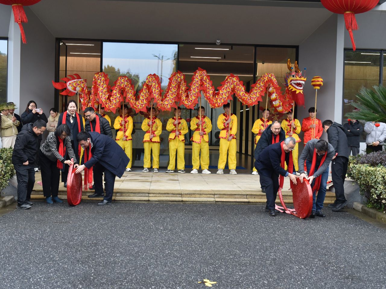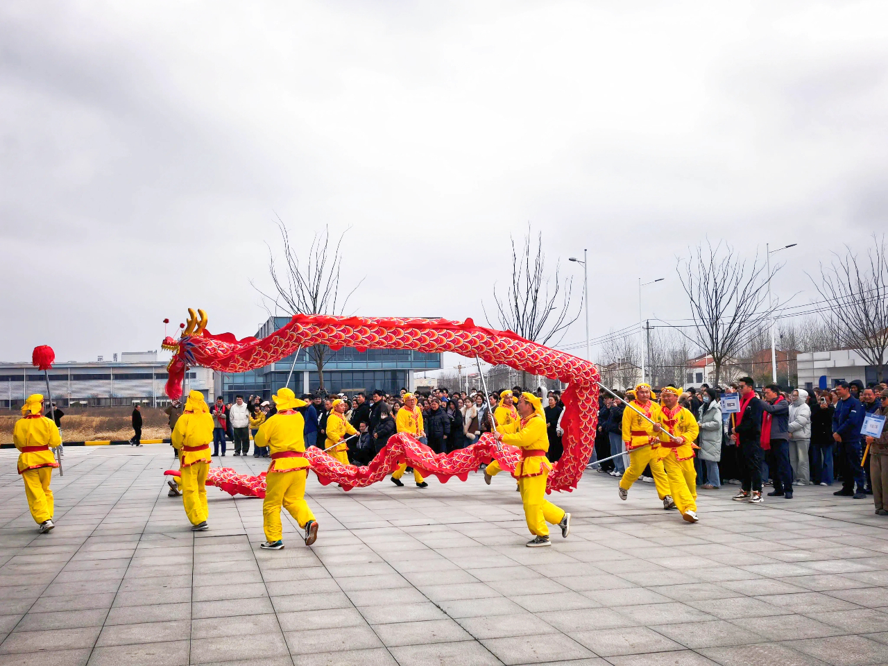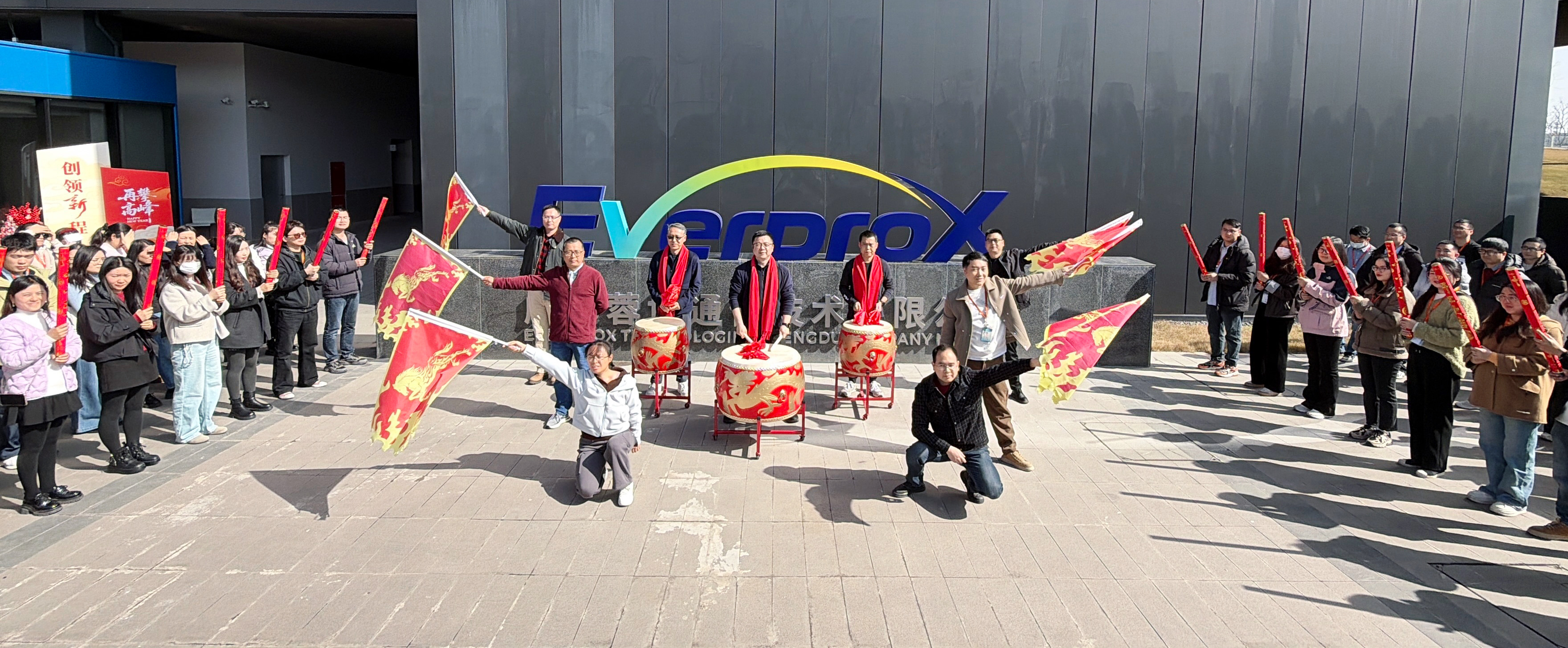 各公司总司理登台致辞,如战鼓催征,点燃全场斗志。“鼓声起,祥瑞至!”随着主持人一声令下,舞龙团队踏着鼓点翻腾入场。金龙追逐宝珠,时而仰面啸天,时而盘绕盘旋,引得各人纷纷举起手机纪录。