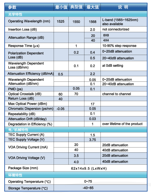 SVOA(1X1) 产品性能指标